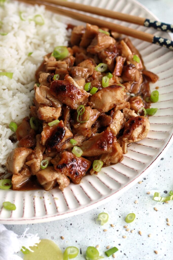 - Rice vinegar or apple cider vinegar brightens the sauce.